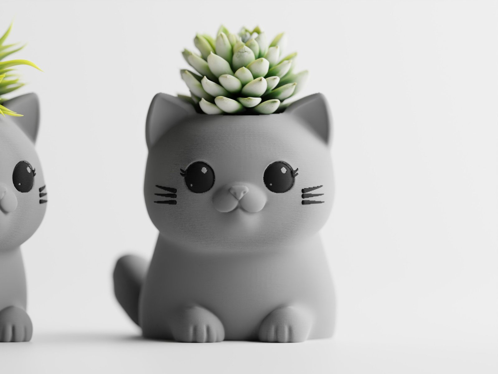 Ya sea con suculentas, pequeñas plantas verdes o follaje decorativo artificial, cada gatito cobra vida con su propio estilo único.