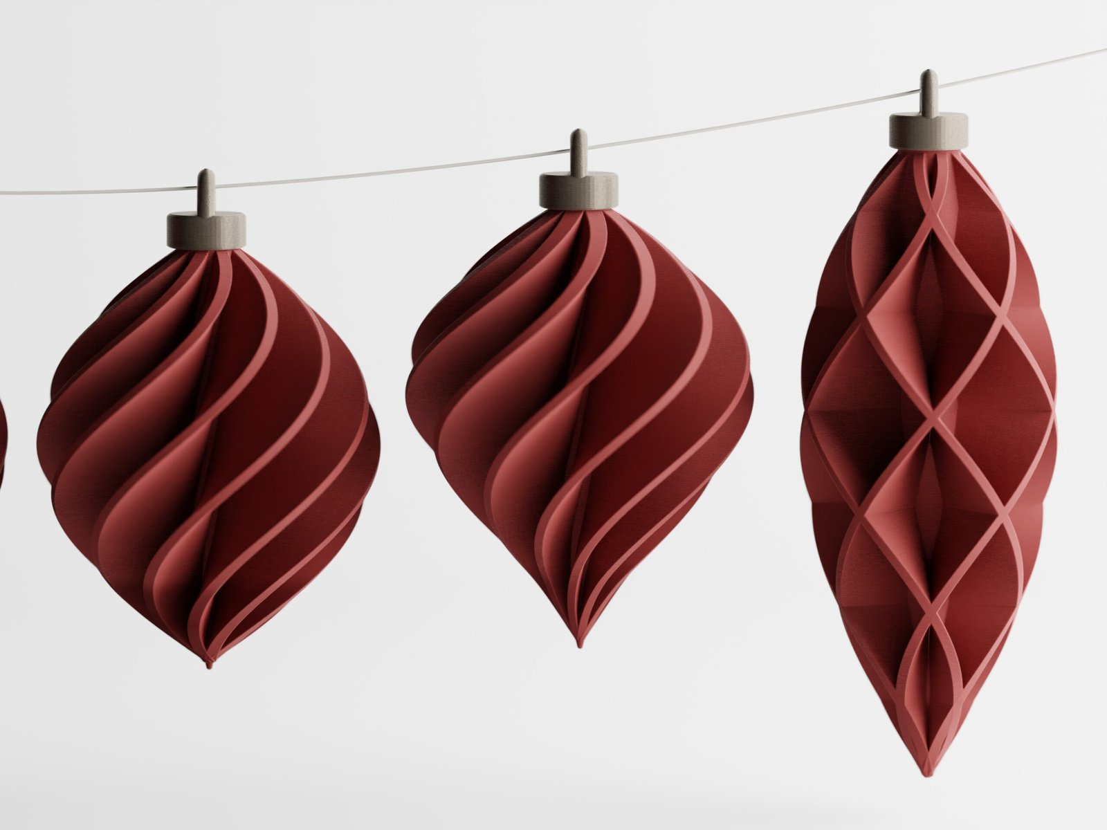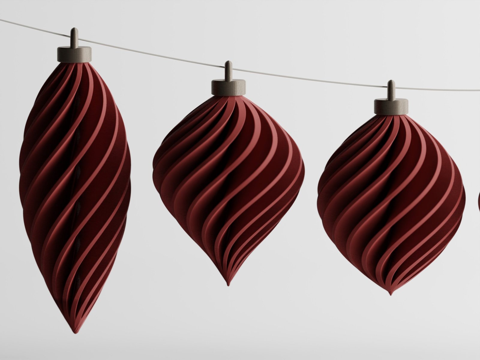 Con sus formas espirales refinadas y su geometría fluida y suave, estas piezas lucen impresionantes en tonos profundos y acabados metálicos, como pequeñas joyas suspendidas en el aire.