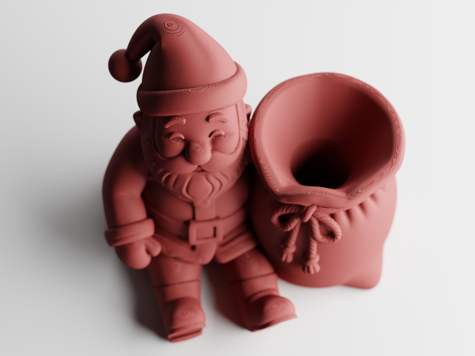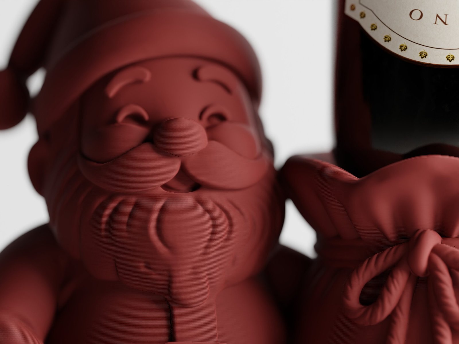 Con su expresión alegre y su forma redondeada y acogedora, Papá Noel se sienta con orgullo junto a su bolsa de regalos… solo que esta vez, la bolsa guarda algo inesperado: tu botella favorita de vino, colocada boca abajo para una presentación inolvidable.