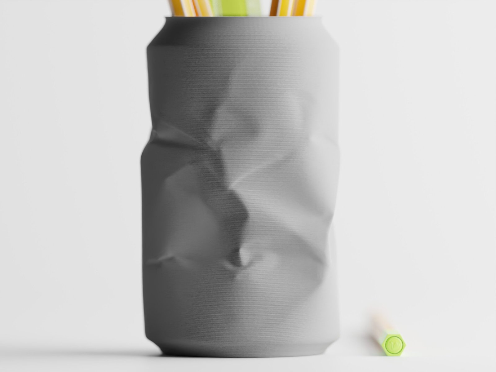 Inspirado en la forma familiar de una lata de refresco ligeramente arrugada, este diseño lleva un toque juguetón de realismo cotidiano directamente a tu escritorio: solo que un poco más estiloso, un poco más escultórico y mucho más divertido.